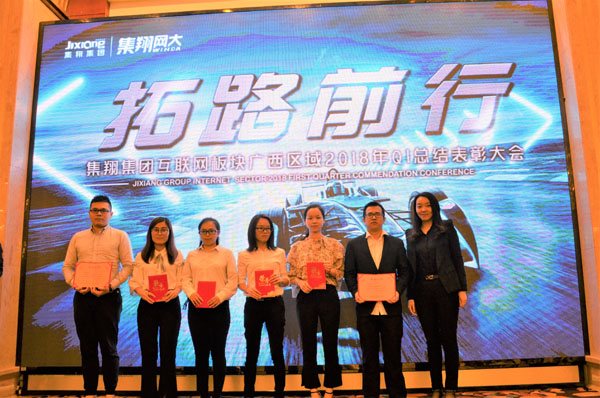 2018年4月13日下午,廣西集翔網大信息科技有限公司迎來了集翔集團互聯網板塊廣西區域2018年Q1季度的總結表彰大會。