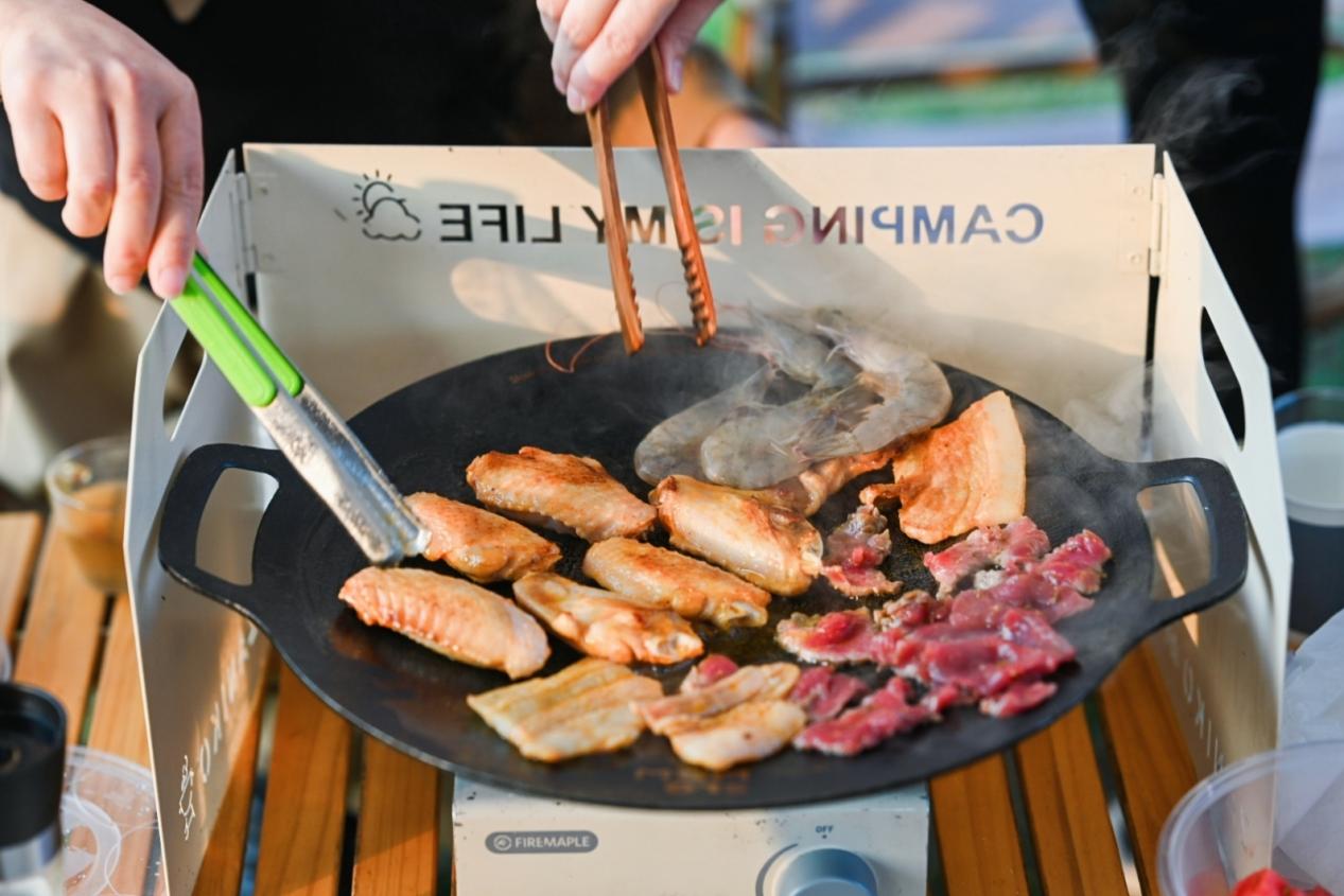 休息區內,繽紛飲料、精致食材……陸續上架,吸引了大家的目光。午后時光,帳篷下的客戶朋友紛紛圍爐煮茶、燒烤暢飲、閑聊趣談,忘卻城市的喧囂煩擾,盡情享受“偷得浮生半日閑”的樂趣。