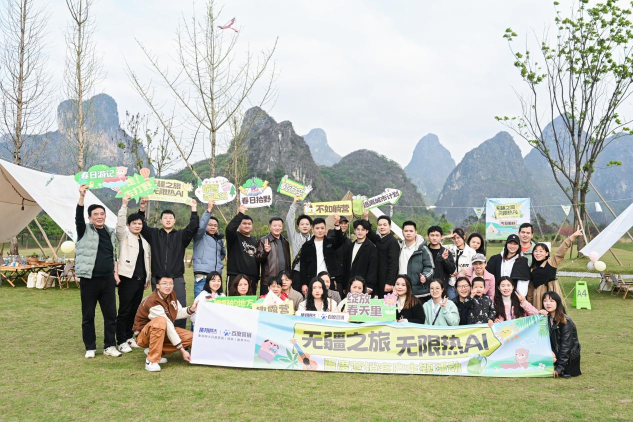 3月30日,由集翔網大百度營銷(桂林)服務中心(以下簡稱集翔網大)舉辦的“無疆之旅·無限熱AI——百度營銷客戶主題活動”,在桂林蒼梧之野國際露營基地順利舉行。